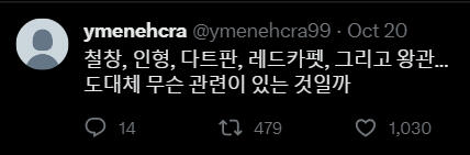 Korean:얼마 전부터 저는 이상한 일들을 겪고 있습니다. 이 이상한 종이를 주운 후부터 모든 일이 시작되었습니다. 이 종이에 대해 알고계시거나 저와 같은 일을 겪으신 분들은 저에게 DM부탁드립니다.9월 9일, 제 생일파티가 끝난 후의 일이었습니다. 친구들과 함께 놀고 집에 오는 길에서 우연히 이 봉투가 바닥에 떨어져 있는 것을 보게 되었습니다. 안에 무언가 들어있어서 궁금하기도 했고 취하기도 했던 터라 종이를 주워 봉투 안의 내용을 확인하였습니다. 확인한 이후부터의 다음날 아침까지의기억이 제게는 없습니다. 너무 과음해서 필름이 끊긴 것으로 생각했던 저는 대수롭지 않게 넘어갔습니다. 그리고 그날부터 저는 기억이 한번씩 사라지기 시작했습니다. 그 기억이 사라졌을 때, 저는 제가 모르는 이상한 행동들을 하게 됩니다. 가족이나 지인들이 그때 왜 그랬냐는 식으로 물어본 적이있긴 했지만 기억이 없었기에 무슨 소리 하는 건지 알아들을 수 없었고 내가 잊어버렸나보다 하고 단순하게 넘어갔습니다. 하지만 며칠 전 저는 유튜브에 들어가고 이상한 아이디로 로그인된 것을 발견합니다. 제가 만든 적이 없는 처음 보는 아이디였습니다. 심지어는 트위터도 새로운 계정으로로그인되어 있었습니다. 지금 트윗을 올리고 있는 이 계정이 바로 그 계정입니다. 새로운 계정이 생기는 것들쯤이야 별거 아니니 그냥 넘어갈 수 있습니다. 하지만 어제 트위터에 들어와 보니 이상한 사진이 하나 올라와 있었고 휴대폰을 해킹당한 줄 알고 놀란 채로 친구들에게 고민을 토로했습니다.친구들은 일단 무서우니 사진부터 삭제하라고 하여 삭제하였습니다. 그러나 오늘 다시 들어와 보니 같은 사진이 또 올라와 있었습니다. 아무튼 친구들은 요새 들어 제가 다른 사람 같았다며 친구가 그리던 왕관 그림을 찢기도 또 모르는 사람 가방에 붙어있는 왕관키링을 떼간 적도 있다고 하였습니다.제가 이렇게 공격적인 행동을 하였다는 것이 너무 무섭게 느껴졌고 저는 해결책을 찾고 싶었습니다. 하지만 이상하게도 그때부터 왕관을 찾게 되면 모든 것이 해결될 것이라는 확신이 머릿속을 떠나지 않습니다. 제발 제가 왕관을 찾을 수 있도록 도와주세요. RT 부탁드립니다.Translation:For quite a while, I've been going through some strange occurrences. These strange things all started when I picked up this strange piece of paper. If there is anyone who knows about this paper or has been through something similar, please DM me.It was after my birthday party on September 9th. On my way home after hanging out with my friends, I happened to see this envelope on the floor. I was curious and drunk because there was something inside, so I picked up the paper and checked the contents inside the envelope.I had no memories of checking it, even from the next morning. I don't have any memories. I thought the film was cut off because I drank too much, but I didn't care. And from that day on, my memory began to fade. When that memory disappears, I do strange things that I don't know. My family and acquaintances asked me why I did that.I had done it, but I didn't remember, so I couldn't understand what they were talking about, and I simply moved on, wondering if I had forgotten. But a few days ago, I went onto YouTube and found myself logged in with a weird ID. It was my first time seeing an ID that I've never made it. Even my Twitter is using a new account.I was logged in. The account I'm tweeting about right now is the one. It's not a big deal to have a new account, so I can just move on. But, when I came onto Twitter yesterday, I saw a strange picture and I was surprised that my phone was hacked, and I told my friends about my concerns.My friends told me to delete the picture at first because they were scared. But when I came back in today, the same picture was posted again. Anyways, my friends said that I looked like a different person these days, and that I had taken off the crown key ring attached to a person's bag that I didn't even know about.It felt so scary that I was acting this aggressive, and I wanted to find a solution. But strangely enough, I can't seem to find peace until I find that crown and solve it all. Please help me find the crown. RT, please.